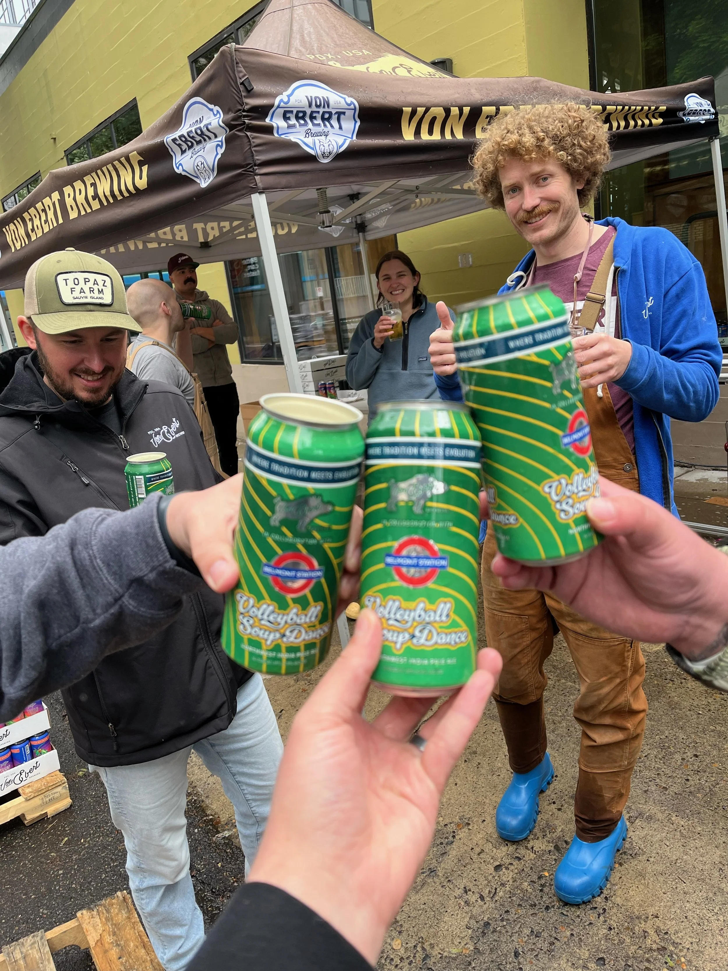 The name and flavor profile come from a play on our absolute favorite IPA, Volatile Substance. Von Ebert took that classic recipe and tweaked it ever so slightly. And during Covid, when everyone had masks on, sometimes the name Volatile Substance would be muffled to sound like "Volleyball Soupdance"